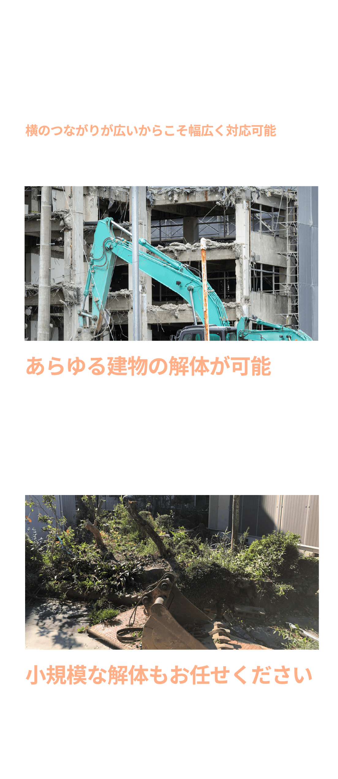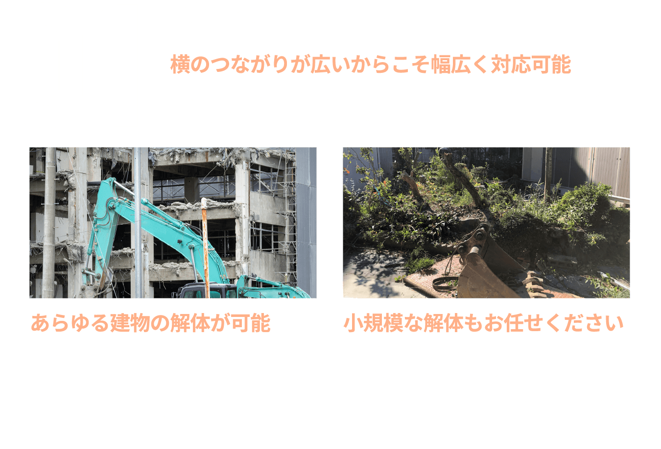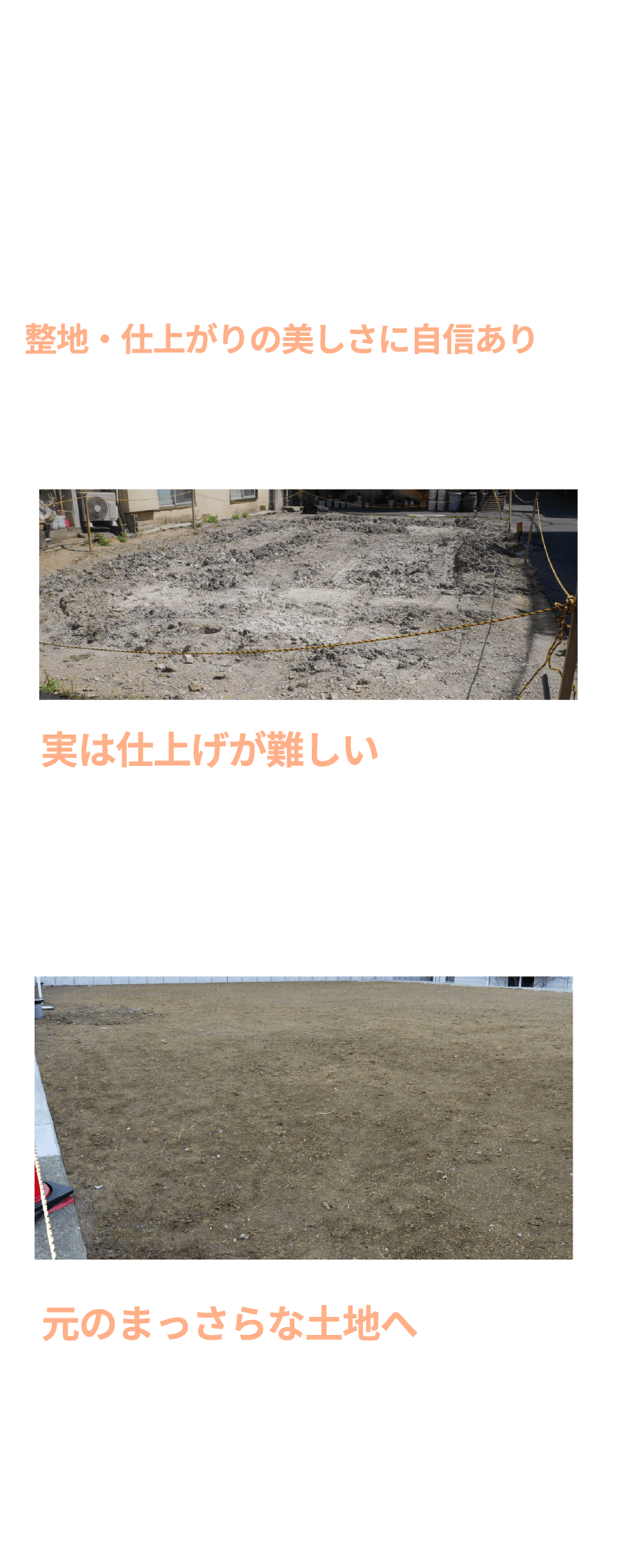 多種多様な現場に対応できるスキルとお客様第一のマインドで土地再生のお手伝いをいたします。
